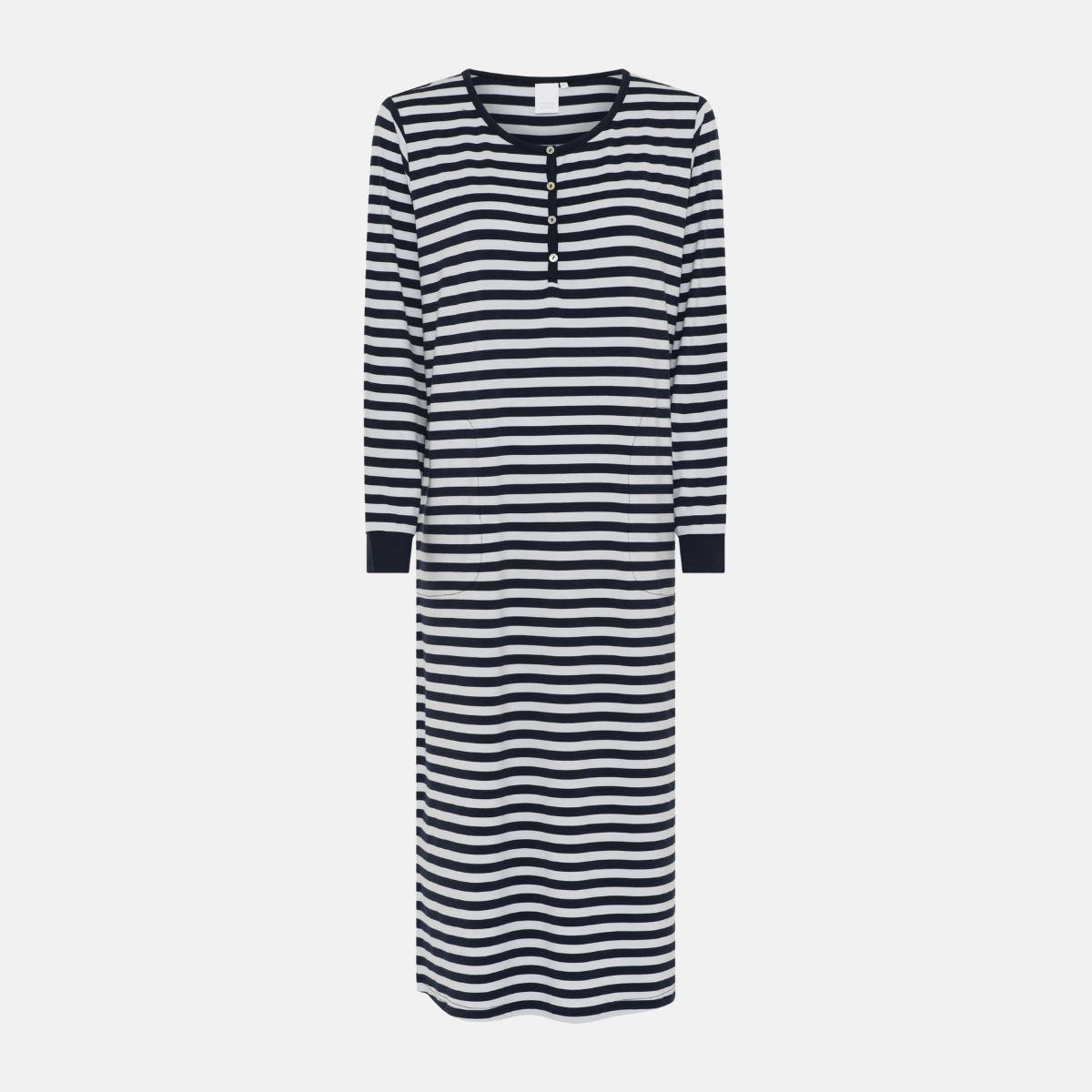 Beate langærmet bambus natkjole - navy/hvid stribet